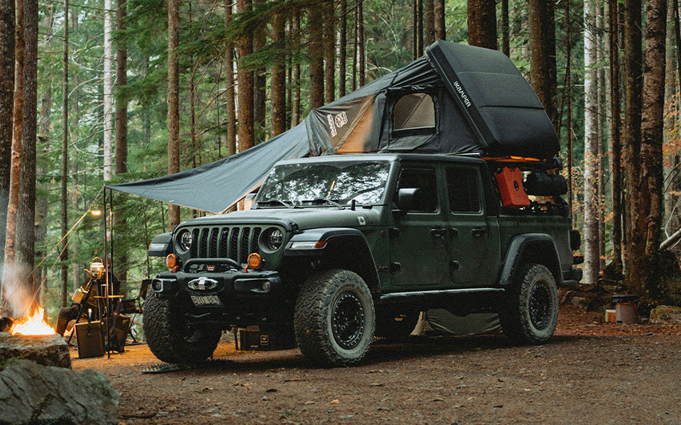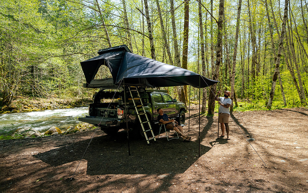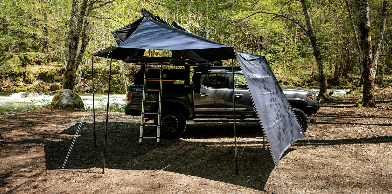 Turn your RTT into a spacious shelter. The Awning 3.0 adds 167 ft² (15.5 m²) of shade and weather protection, zipping directly onto your iKamper roof top tent.