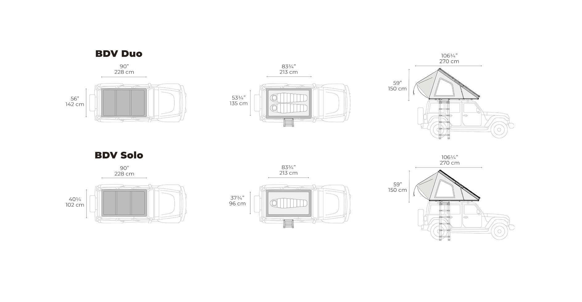Compact, low-profile, and built for solo explorers, the BDV Solo is more than a tent—it’s a gear solution. We offer an unassembled version, offering a hands-on setup experience allowing for customization. With wrap-around T-tracks, top crossbar compatibility, and multiple access points, it’s built for ultimate versatility and all-season performance.