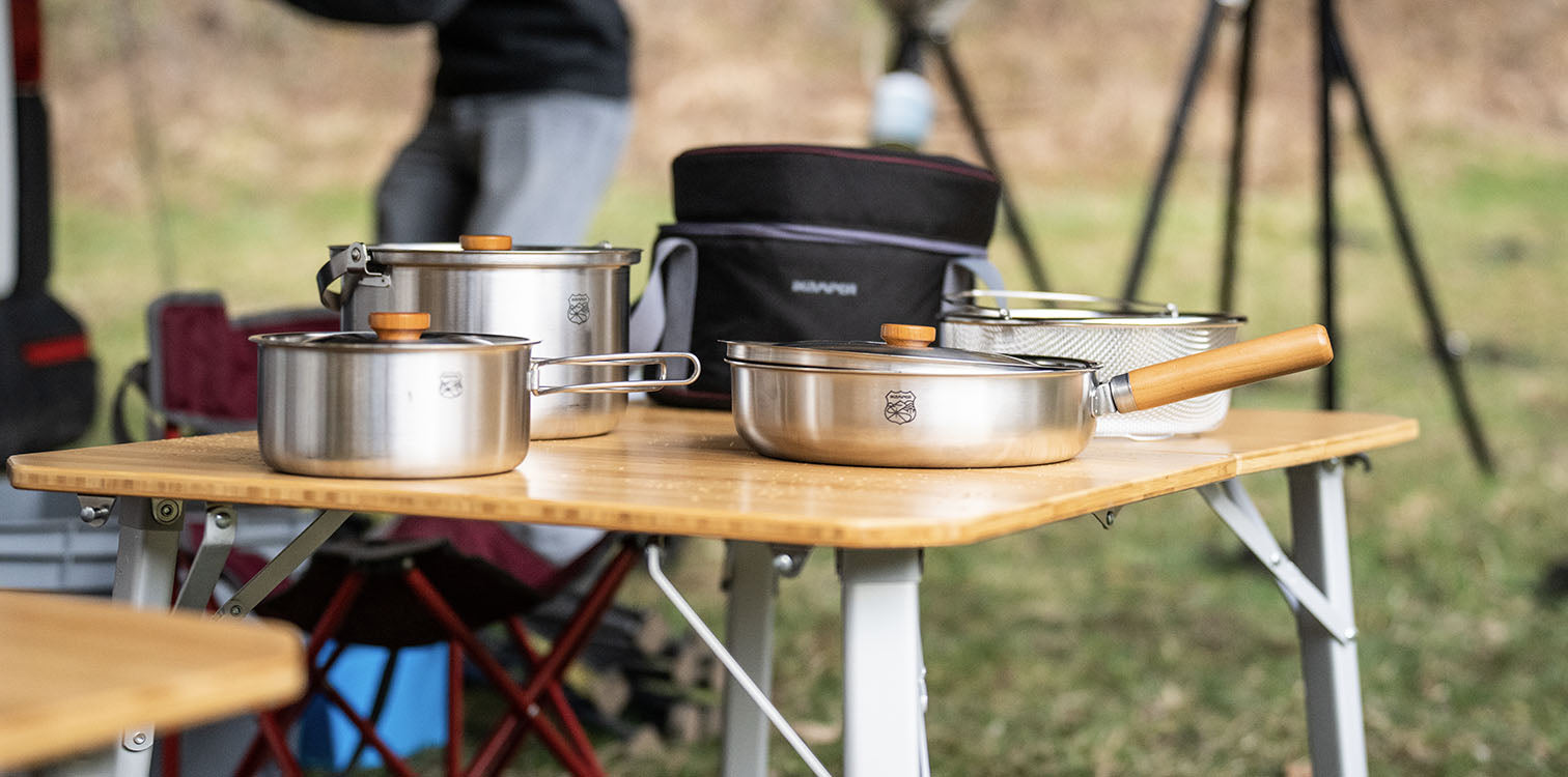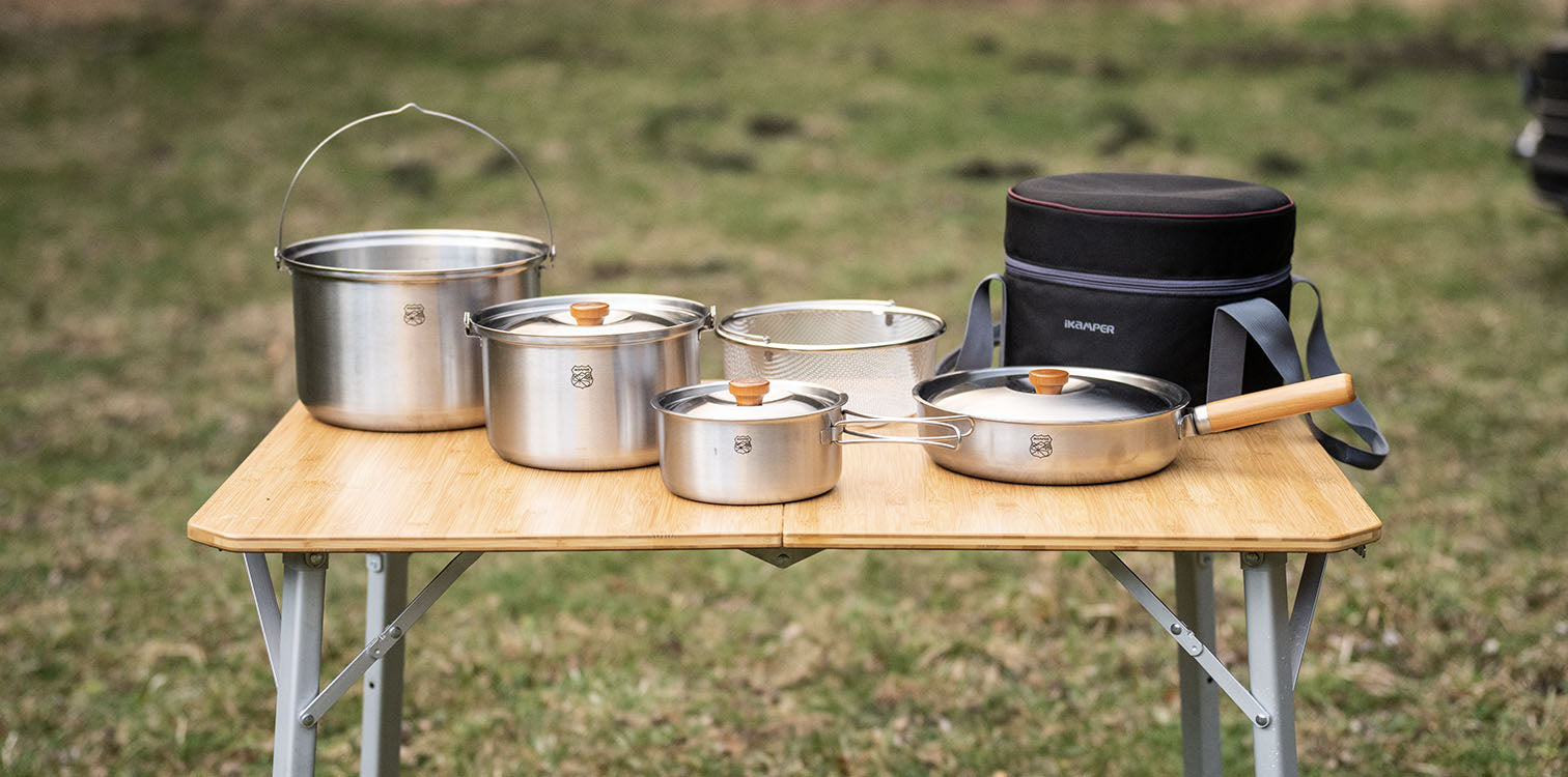 For the camper that enjoys eating well and cooking from scratch. This 9-piece cookset contains everything you need to feed a small crowd.