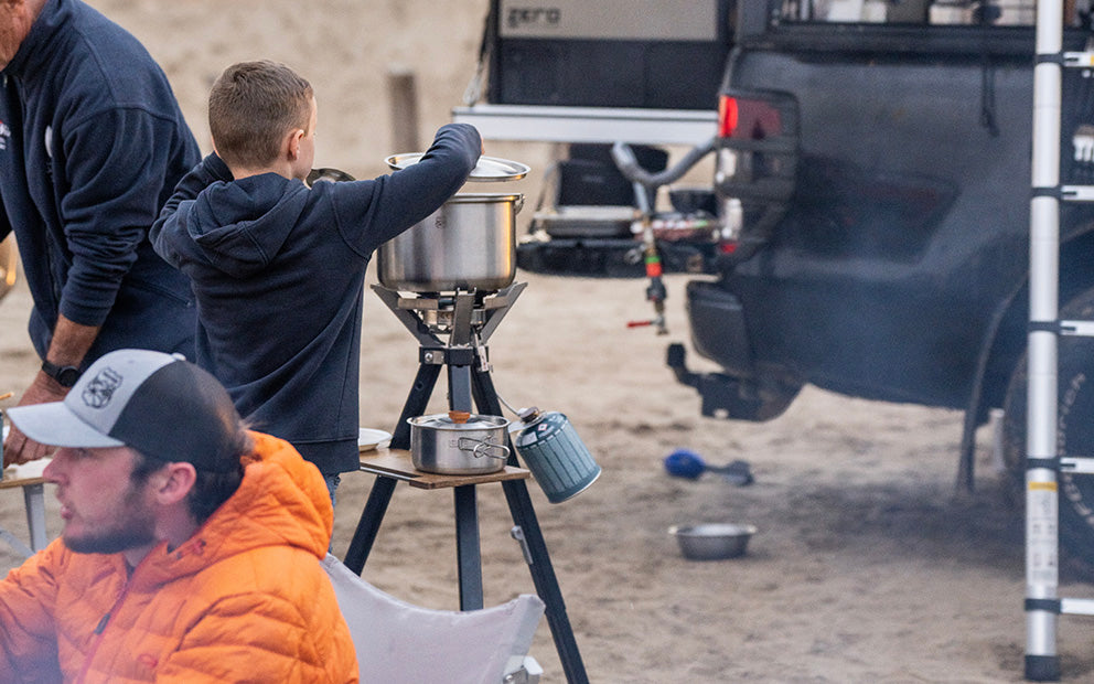 The foundation of the Disco Series: a versatile Stove and Tripod designed to adapt to your outdoor cooking needs, wherever the adventure takes you.
