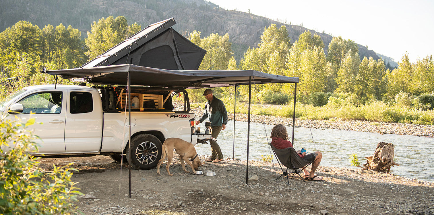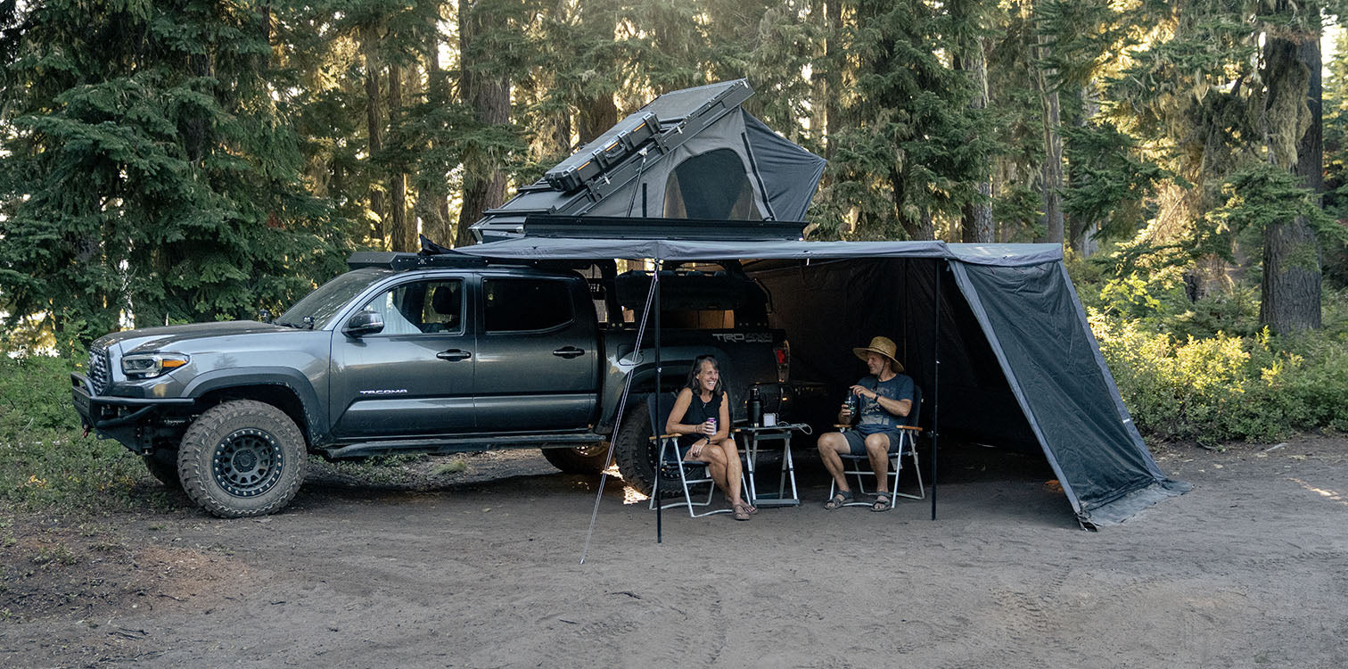 First-of-its-kind, the ExoShell 270 awning features a hard shell anodized aluminum case for unmatched durability. Forget the legs because this 270 awning is freestanding to reduce clutter around your feet and make setup a breeze. If the wind kicks up, just deploy the legs and hunker down for the night.